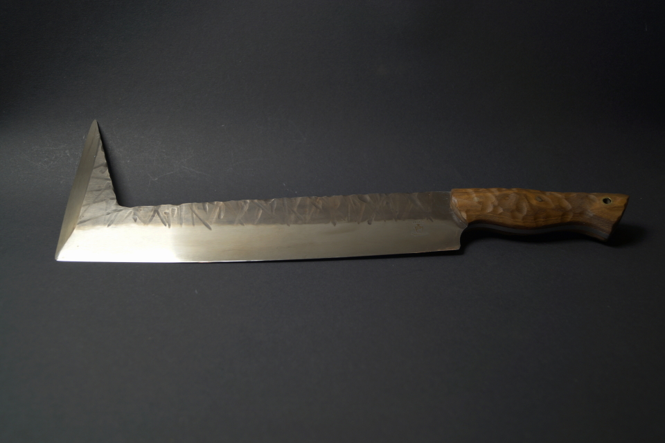 Kochmesser / Klingenlänge 24,5cm / Klingenhöhe 6cm / Gesamtlänge 36,5cm / Materialstärke 2,5mm / Stahl Böhler N690 / Griff Micarta geschraubt € 285,-